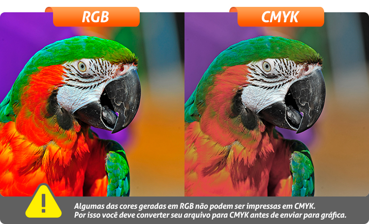 ao enviar seu arquivo, ele será automaticamente convertido ao padrão de cor CMYK na hora da impressão,